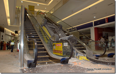 Seorang saksi, Mohd Jawaidi Moha Zain, 23, berkata ketika kejadian, beliau yang juga Penolong Pengurus Kyros Kebab, yang terletak bersebelahan eskalator sedang melayan pelanggan.